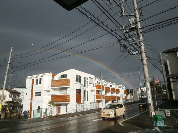 出来たばかりの新築群の真上に虹が~。