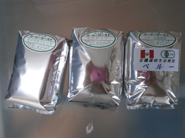 今回はまほろまブレンドとマンデリン、ペルー有機栽培と言うコーヒー豆を購入。