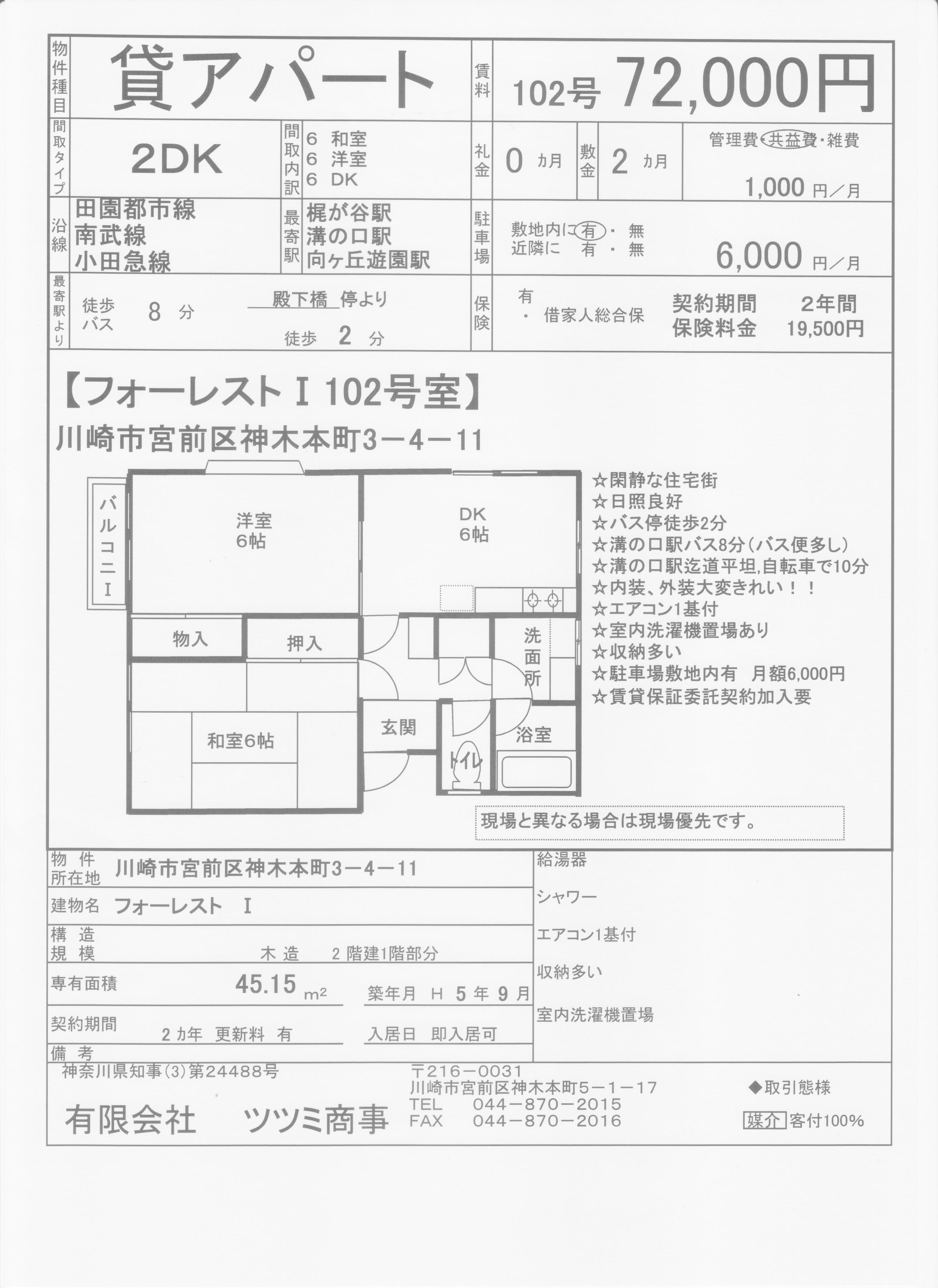 建物名 フォーレストⅠ102号室