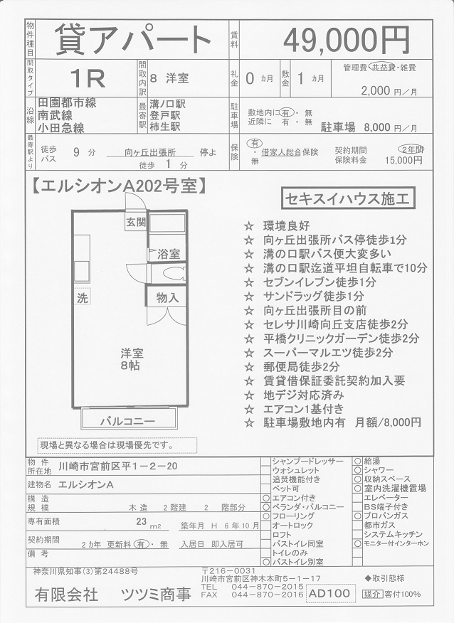 田園都市線 溝の口駅バス10分 向ヶ丘中学校バス停徒歩3分