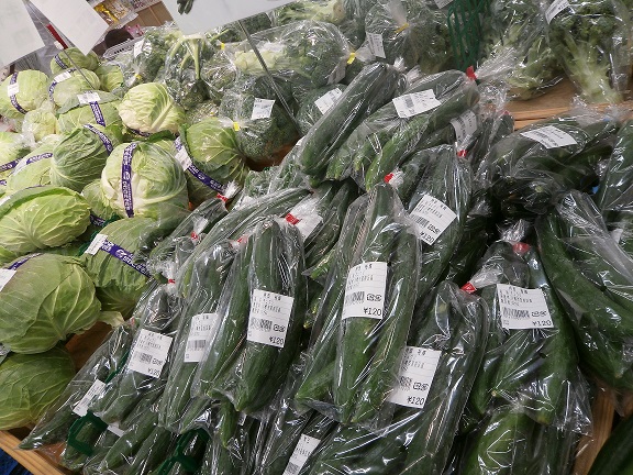 中に入ると大きなスーパーみたいで、地元で作った野菜や果物の他に、