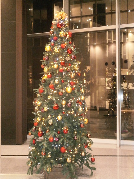 とても素敵なマンションで、大きなツリーが飾られていて、