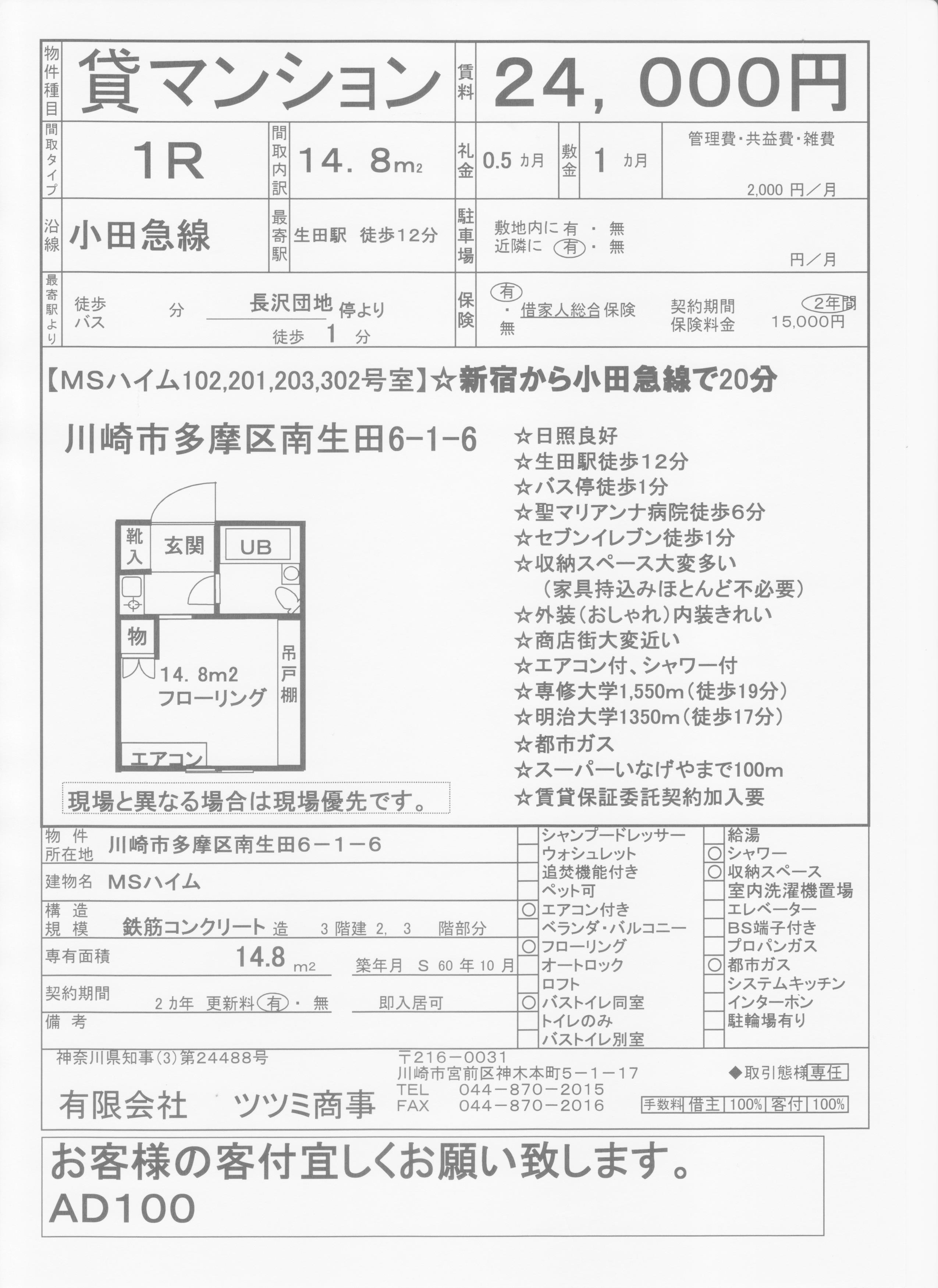 神代植物公園のある調布駅から2駅目の京王稲田堤駅にある1ルームアパート