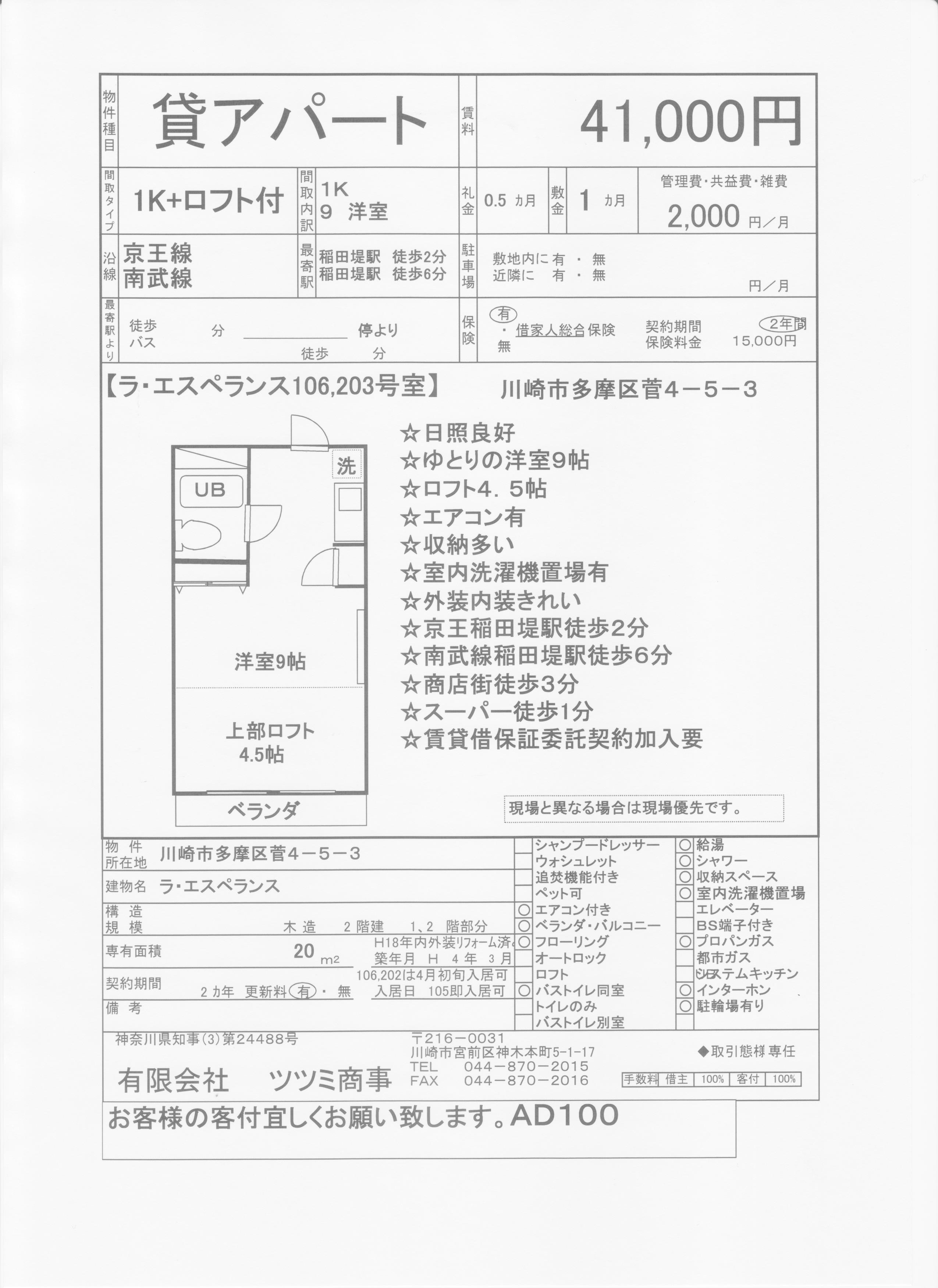 家賃 月額41,000円