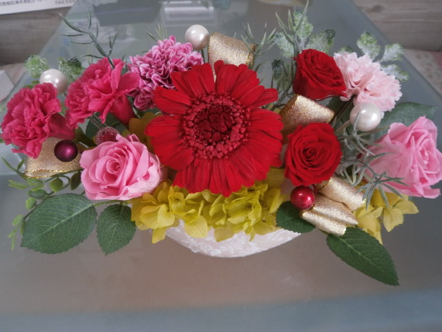 お友達へのプレゼントとしてブリザーブドフラワーアレンジメントを
