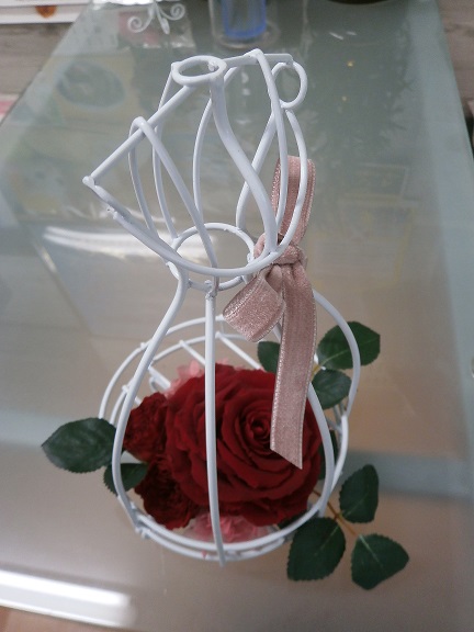 以前に、生花のドレスで使った道具を利用してアレンジしました。
