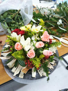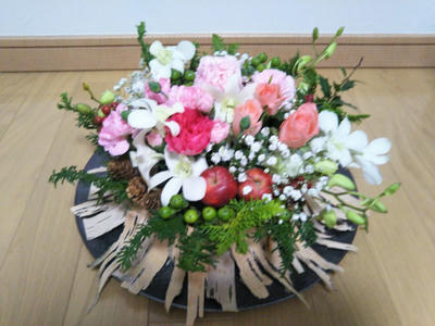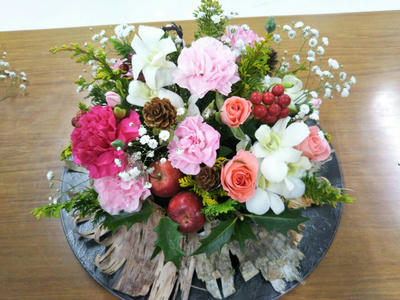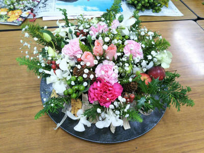 12月中旬になり、フラワーアレンジメント教室の課題はクリスマス一色です。