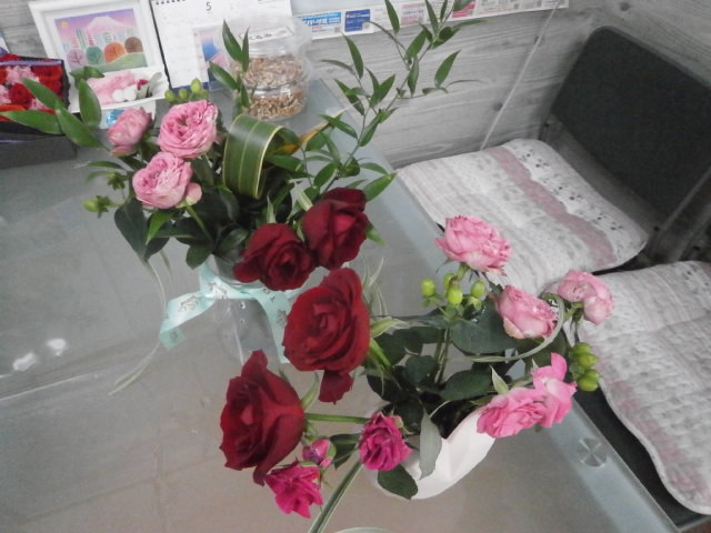 先週、フラワーアレンジメント教室で習ったバラづくしのバラ達、